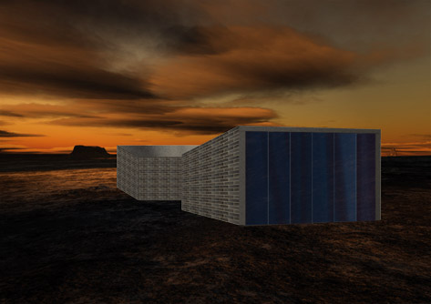 Das in SketchUp erstellte Gebäude wurde, mit Hilfe von Photoshop,