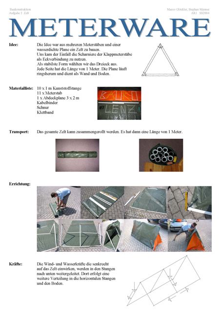 Es sollte ein möglichst leichtes, transportables und einfach baubares Zelt konstruiert werden.